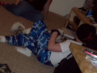 and Isaac put his gloves and hat on... I guess to look tougher.